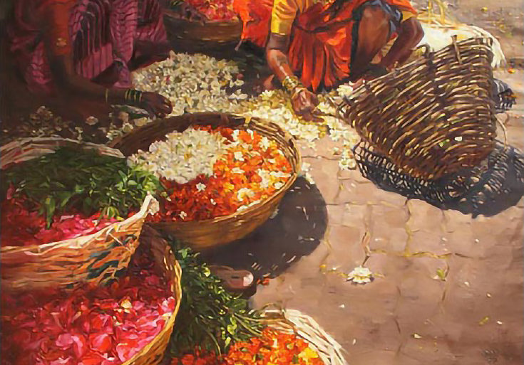 After graduating from Mumbai University with his art degree, Vivek Vadkar dove into painting, combining his two favorite subjects: landscapes and figures—and the results are simply stunning. Vivek’s eye for composition is excellent, elevating normal, everyday moments into fine art. Whether it’s an outdoor market, lined by woven baskets filled to the brim with food, or a dirt path winding towards a distant town, each...
